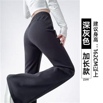 YF3914-(4色入内)秋冬松紧腰抽绳微喇叭坠地感弧边包臀运动休闲裤