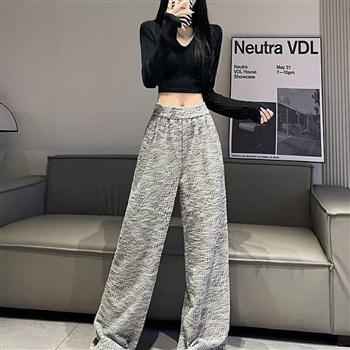 YF3920-图片色韩版收腹高腰直筒坠地感粗花呢阔腿裤 时尚小香风休闲裤