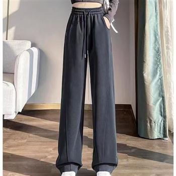 YF3924-(2色入内)时尚新款松紧腰直筒坠地感开叉设计胖MM显瘦秋冬休闲裤