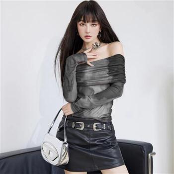 YF3827-(2色入内)性感时尚宴会百搭一字肩弹力显瘦欲女风水墨上衣