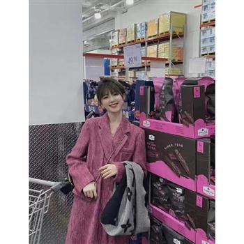 YF3836-图片色法式香艳红色中长款大码西装领系扣加厚毛呢ins大衣潮