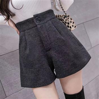 YF3842-(2色入内)秋冬新款加厚毛呢面料双纽扣褶折A字阔脚裤 外穿西装短裤