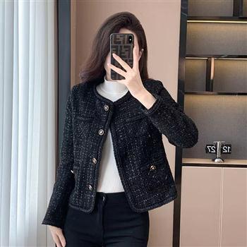 YF3864-图片色小香风长袖系扣短款毛呢外套 名媛气质宽松大码小个子上衣