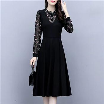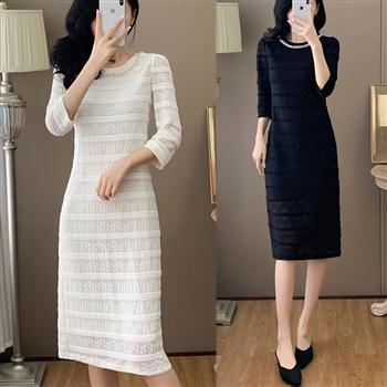YF3711-(2色入内)时尚别致高级级长袖套头蕾丝连衣裙 新款得体显瘦打底裙