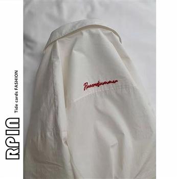 YF3696-(3色入内)韩版蓝色后背经典字母慵懒风大码设计休闲衬衫