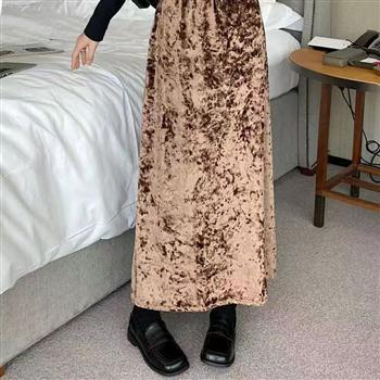 YF3701-(3色入内)秋冬亲肤金丝顷松紧腰高腰包臀中长款开叉优雅半身裙