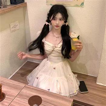 YF3695-图片色甜美时尚吊带蕾丝荷叶礼结印花抹胸欲女风短裙礼服裙
