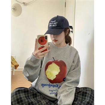 YF3705-图片色学院风小心朵苹果字母印花宽松大码显瘦原宿风休闲卫衣潮