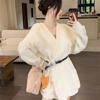 YF3717-(2色入内)冬季新款流苏斗蓬宽松大码中长款开衫针织外套 毛衣