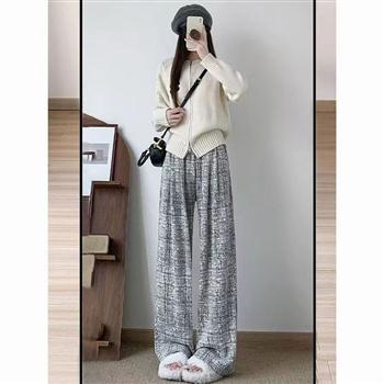 YF3718-(3色入内)2024春秋新款软糯舒适直筒显瘦阔腿裤 休闲坠地感拖地裤