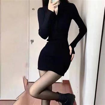 YF3541-(2色入内)秋冬长袖套手指设计拉链立领弹力修腰包臀欲女风气质连衣裙