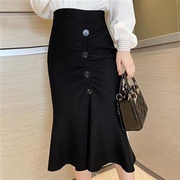 YF3545-(3色入内)千鸟格鱼尾裙 时尚高腰包臀复古气质针织半身裙新款