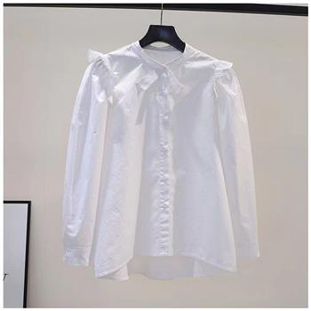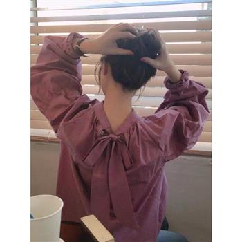 YF3585-(2色入内)春秋新款小心机交叉系蝴蝶结木耳边宽松大码时尚别致衬衫