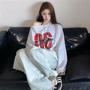 YF3552-(2色入内)秋冬新款06字母印花露肩欲女风宽松大码休闲卫衣潮