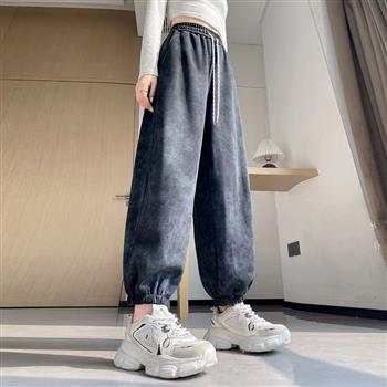 YF3572-(2色入内)秋冬新款高腰绑绳直筒束腿扎染慵懒风别致哈伦风卫衣裤
