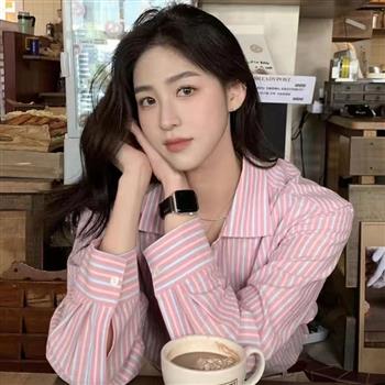 YF3554-图片色甜美时尚条纹显瘦大码长袖翻领宽松别致港式OL衬衫