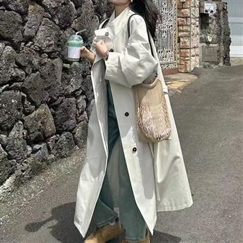 YF3581-图片色2024秋冬长袖立领排扣中长款休闲百搭大码风衣外套新品