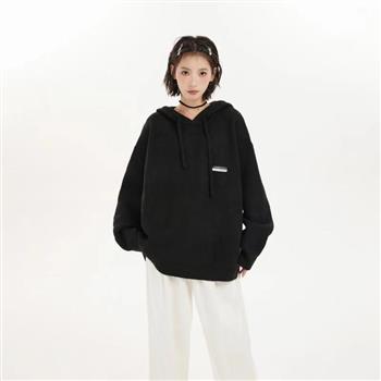 YF3330-(2色入内)秋冬外穿长袖连帽胖MM显瘦贴标慵懒风时尚保暖毛衣外套