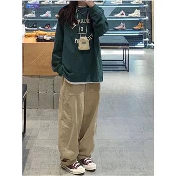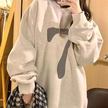 YF3333-(3色入内)港式秋冬假两件字母印花慵懒风大码圆领长袖休闲百搭卫衣衫