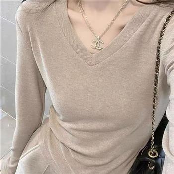 YF3338-(6色入内)韩版秋冬新款磨毛长袖V领纯色百搭简约时尚T恤潮