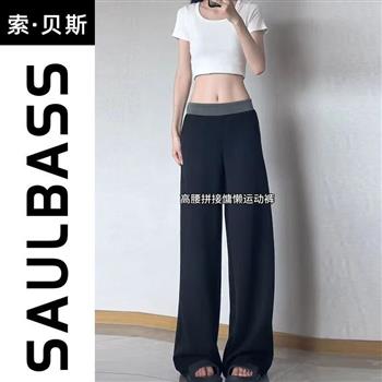YF3341-图片色春秋新款卫衣裤 撞色设计高腰直筒坠地感休闲裤