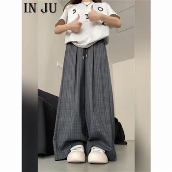 YF3346-图片色山本风绑绳高腰复古格子直筒坠地感休闲百搭西装裤