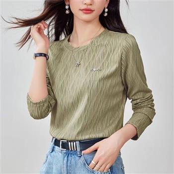 YF3348-(3色入内)甜美时尚秋季别致新款长袖套头波浪纹LOVE字母潮T恤
