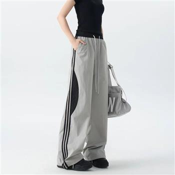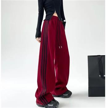 YF3351-(3色入内)美式侧条纹松紧腰直筒三条杠设计感坠地运动休闲卫衣裤