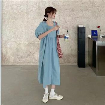 YF3357-(2色入内)泡泡套头宽松藏肉慵懒风大码显瘦休闲连衣初 原宿风别致长裙